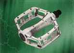 | BMX (акробатика) делаются из алюминиевых сплавов, ось педали хроммолибденовая, подшипники обычные, широкая платформа с очень агресивными элементами, вплоть до ввинчивающихся штырьков толщиной до 2мм и высотой до 3мм. Нога на такой педали просто " приклеивается", однако спрыгнуть с педалей никаких затруднений не представляет. Защита обязательна!