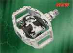 Прогулочные и MTB обычно сделаны из алюминиевых сплавов со стальной рамкой, ось из стали Hi-Ten или хроммолибдена, подшипники обычные, небольшая платформа с агресивными элементами. Подходят и для любительского кросс-кантри. На фотографии универсальная модель, контакт является отсоедняемой частью и его можно купить отдельно. Также к этим педалям можно присоединить обыкновеные туклипсы (с ремешками)