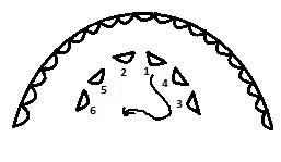 Д1, Д3 Д5 продолжают двигаться по кругу против часовой стрелки, Д2, Д4, Д6 делают поворот через правое плечо, Д2 подходит к Д1, Д4 подходит к Д3, Д6 подходит к Д5, образуя снова звёздочку.
