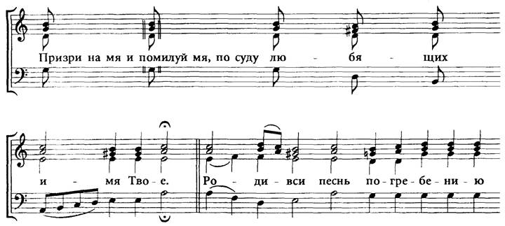 Лице́ Твое́ просвети́ на раба́ Твоего́ // научи́ мя оправда́ нием Твои́ м. Ангелов и Архангелов чини, предстояще, воспевают невидимо. Исхо́ диша водна́ я изведо́ сте очи мои, // поне́ же не сохрани́ х зако́ на Твоего́. Жены честныя со апостолы вопияху, плачуще. Пра́ веден еси, Го́ споди // и пра́ ви суди́ Твои. Неискусомужная Дево, Мати Бога Вышняго, како стерпим болезнь? Запове́ дал еси пра́ вду, // свиде́ ния Твоя, и и́ стину зело́. Твое́ ныне отше́ ствие — радость всему миру, нам же плач скорбный.