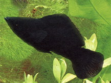 МОЛЛИЕНЕЗИЯ ЛЯТИПИННА (Poecilia latipinna Lesueur, 1821), рыба семейства пецилиевых, обитает в прибрежных пресных и солоноватых водоемах от полуострова Флорида до полуострова Юкатан. Одна из наиболее популярных аквариумных рыб. Впервые завезена в Европу в 1913 году. Другое название — моллиенезия широкоплавничная. Близкородственный вид — моллиенезия парусная (Poecilia velifera Regan, 1914). Оба вида очень схожи и, возможно, являются подвидами. От них произошел ряд гибридов. Моллиенезии характеризуются увеличенным парусообразным спинным плавником с длинным основанием. Тело вытянутое, плотное, у самцов до 10 см, у самок — до 12 см длиной. Выведено множество форм, различающихся как по окраске, так и по форме плавников. Существуют крапчатая, альбиносная, красная, оранжевая и черная формы с нормальными или лировидными хвостовыми плавниками. В Сингапуре выведена форма с укороченным телом («шаровая молли»). Мирные рыбы. Всеядны, употребляют любой живой и сухой корм, обязательны растительные подкормки (водоросли, салат, шпинат). Продолжительность жизни до 8 лет. Аквариум объемом 60-100 л, местами засаженный растениями. Необходимы аэрация, фильтрация и регулярная подмена воды. Температура воды 23-26°С, жесткость до 15-25°, pH 7, 5-8, 0. По утрам желательно солнечное освещение. При плохом самочувствии рыб воду можно подсолить (1-7 г/л). Половозрелости самки достигают в 5-6 месяцев, самцы — в 8-12. Желательно отсаживать самку в отдельный аквариум с условиями, как при содержании, но поддерживать температуру 25-30°С, жесткость 12°, рН 7, 5. Плодовитость у крупных самок до 200 мальков, но обычно 50-100. Мальков выкармливают науплиями рачков, микрочервями, вареным яичным желтком, толокном и др.