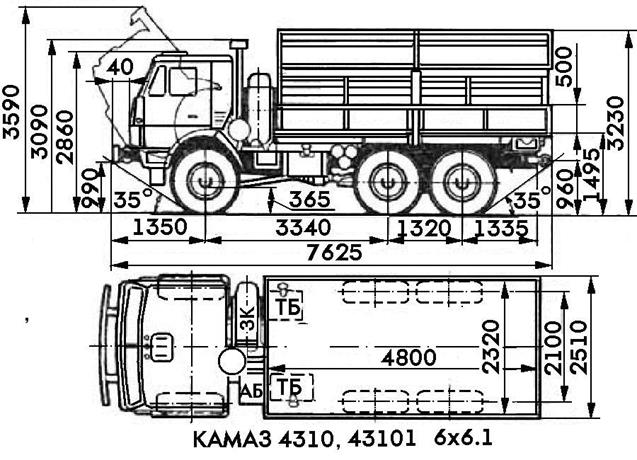 рИС.2 -гАБАРИТНЫЕ РАЗМЕРЫ АВТОМОБИЛЯ КАМАЗ 4310