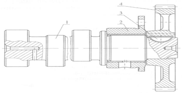 1 - распределительный вал; 2 - корпус подшипника; 3 - шпонка; 4 - шестерня распределительного вала.