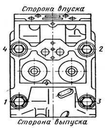 Рис.8.Последовательность затяжки болтов крепления головок цилиндров