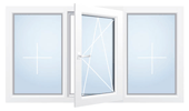 3х створчатое окно 2100*1400мм. Центральная створка поворот/откид, боковые глухие.