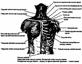 18. Дыхание может быть подразделено на четыре типа: а) верхнее, или клавикулярное (ключичное) дыхание, когда соответствующие мышцы шеи активизируют преимущественно верхнюю часть легких; б) интеркостальное (межреберное), или среднее дыхание, где активизирована только центральная часть легких; в) нижнее, или диафрагмальное дыхание, где главным образом активизированы нижние доли легких, в то время как верхние и центральные доли легких остаются менее активными; г) в тотальном (полном), или пранаямическом дыхании легкие целиком используются во всю силу своих возможностей. В пранаямическом дыхании сокращение диафрагмы задерживается до тех пор, пока не произойдет сознательное сокращение мышц передней и боковых абдоминальных стенок. Эти мышцы связаны по диагонали с грудной клеткой вверху и тазом внизу. Они опускают и поддерживают в устойчивом состоянии куполообразную диафрагму, которая берет начало на нижних краях ребер; она, в свою очередь, давит на органы брюшной полости и увеличивает объем грудной клетки. Это подготавливает диафрагму к последующему сокращению до максимальной степени и эффективности путем уменьшения центростремительного натяжения. Это уменьшает перекрывание с последующим актом — поднятием и расширением нижней части грудной клетки в восходящем направлении. Это достигается вертикальным натяжением диафрагмы, которое наступает вслед за активизацией межреберных мышц, обеспечивающих наиболее полную амплитуду движений по типу кронциркуля у плавающих ребер, движений по типу ручки корзины у каждого ребра в отдельности, поднятию и полному периферическому расширению грудной клетки как единого целого, начиная с ее основания на позвоночнике. В заключение самые верхние межреберные мышцы и мышцы, соединяющие верхние ребра, грудину и ключицы с шеей и черепом, сокращаются, позволяя таким образом наполняться верхней части легких. Затем уже расширившаяся грудная полость расширяется дальше — вперед, вверх и в стороны.
