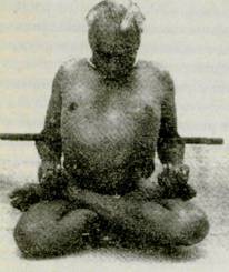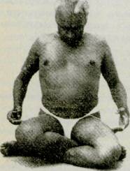р) Расслабьте горло Расположите язык на нижнем небе свободно, не касаясь зубов с) Сохраняйте глаза закрытыми и расслабленными, а внутреннее видение - - активным (фот. 54). Во время вдоха глаза стремятся обращаться вверх (фот. 95) - избегайте этого т) Следите за тем, чтобы уши, мышцы лица и кожа лба оставались расслабленными у) Правильный способ вдыхания устраняет вялость, стимулирует и придает энергию телу и уму. Техника Выдоха (Речака) а) Следуйте пунктам а) - - г), относящимся к технике вдоха б) При вдохе тело действует как инструмент для получения энергии в форме воздуха. При выдохе оно становится динамическим, действуя как инструмент для медленного высвобождения воздуха Сохраняйте сжатие межреберных мышц и плавающих ребер на протяжении всего акта выдоха Без этого устойчивый и плавный выдох невозможен. Глава 15. Искусство задержки дыхания (Куллбхака) 1. Кумбхака означает кувшин, который может быть и полон, и пуст. Кумбхака бывает двух видов. Это пауза: а) между вдохом и выдохом и 6) между выдохом и вдохом. Это — искусство удержания дыхания в состоянии приостановки 2. Кумбхака также означает отвлечение интеллекта от органов восприятия и действия, с тем чтобы сосредоточить его на местопребывании Атмана (пуруши), источника сознания. Кумбхака удерживает садхаку в состоянии молчания на физическом, моральном, ментальном и духовном уровнях. 3. Удерживание дыхания в кумбхаке не следует ошибочно интерпретировать как новое усилие мозга, нервов и тела, предпринятое с целью задержать дыхание. Новое усилие ведет к сверхнапряжению. Кумбхаку следует выполнять с расслабленным умом, оживляя таким образом нервную систему. 4. Когда в кумбхаке успокоено дыхание, успокаиваются и чувства, а ум становится молчаливым. Дыхание — это мост между телом, чувствами и умом. 5. Кумбхаки выполняются двумя способами: сахита и кевала. Когда дыхание удерживается намеренно и обдуманно — это сахита. Сахита кумбхака — это пауза в дыхании: а) после полного вдоха перед начинающимся выдохом (антара или пурака кумбхака) или б) после полного выдоха, предшествующая вдоху (бахья или речака кумбхака). Кевала означает «самопроизвольно» или «абсолютно». Кевала кумбхака — пауза в дыхании безотносительно к пураке или речаке, подобная тому, когда художник всецело поглощен своим искусством или поклоняющийся затаил дыхание в обожании своего предмета Этому состоянию часто предшествует дрожь в теле и боязнь, подобные ощущениям, переполняющим человека, который столкнулся с неведомым. Терпение и упорство превозмогут эти ощущения Кевала кумбхака инстинктивна и интуитивна. В этом состоянии человек полностью поглощен объектом своего поклонения и изолирован от мира, испытывая ощущение блаженства и покоя, превосходящее понимание. Индивидуальность созвучна с Бесконечным (Хатха-Йога Прадипиха, II, 71). 6. Антара кумбхака — это удерживание Господа в форме космической, или универсальной, энергии, которая погружена в индивидуальную энергию. Это — состояние, где Господь (Парамат-ма) соединен с индивидуальной душой (дживатма). 7. Бахья кумбхака — это состояние, в котором йогин отдает саму свою самость в форме дыхания Господу и погружается в Дыхание Вселенной. Это — самая благородная форма* самоотдачи, когда личность йогина полностью погружена в Господа. 8. В Бхагавад-Гите (IV, 29/30) Кришна объясняет Ардж