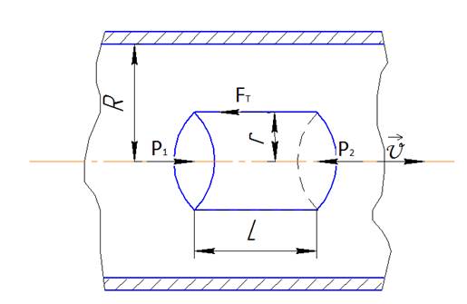 Здесь Выделим в капилляре воображаемый цилиндрический объем газа радиусом r и длиной