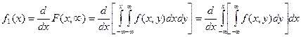 Следовательно, для получения плотности распределения одной случайной величины, входящей в систему, необходимо плотность распределения системы f(x, y) проинтегрировать в бесконечных пределах по другой случайной величине как переменной. Пример 1. Дана система случайных величин (X, Y) с плотностью распределения