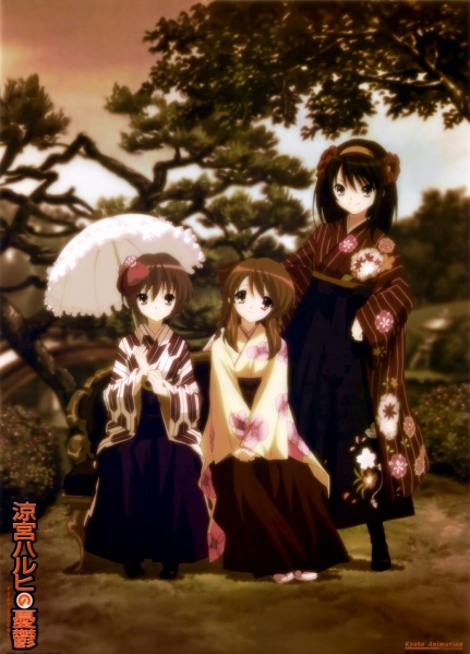 Вот как-то так это было. Дай бог экранизируют в виде спэшла. Антикварный магазин, блошиный рынок; были дома у Саканаки-сан, чтобы навестить Руссо и убедиться, что он поправился; также мы были приглашены в дом Цуруи-сан на Ханами[18], и сидели в её огромном саду. Да уж, последнее было по-настоящему интересным. По щелчку пальцев или хлопку в ладоши, прислуга выходила из дома с подносами, на которых было столько еды, что можно было бы накормить африканскую деревню средних размеров. И это действительно немного пугало меня. Если Харухи пригласили – она, не смотря ни на что, совершенно точно будет присутствовать. Но даже если её вовсе не приглашали, она не станет колебаться, чтобы присоединиться. В любом случае, Харухи, званая и еще чаще незваная, но переполненная силой ранней весны, продолжала прибавлять нам дел. И как это она не устает? Харухи была особенно заинтересована в съемках сиквела фильма «Приключения Асахины Микуру: Эпизод 00», который мы сняли для культурного фестиваля Северной старшей школы в прошлом году. Его подзаголовок, а точнее, настоящий заголовок, был ужасающим, но не меньше пугал тот факт, что Харухи уже готовилась к новому фестивалю культуры, еще не успев перейти на второй год обучения. Она, в очередной раз взяв громкоговоритель и написав «Ультра Режиссер» на повязке, вручила мне видеокамеру, которая бездействовала в углу клубной комнаты, и направилась собственноручно переодевать Асахину-сан, вынудив нас с Коидзуми помчаться за дверь. Невзирая на то, что в названии было имя Нагато, главным героем истории оставалась Асахина Микуру. (Что? Разве вместо неё главным героем не должен был быть Коидзуми Ицки?) Здесь следовало бы дать маленькое пояснение. Так как настоящая сущность Асахины Микуру — это боевая официантка из будущего, Асахине-сан пришлось снова носить тот откровенный костюм. Это идея ультрарежиссера Судзумии Харухи. Нагато продолжила носить свою школьную форму с шляпой ведьмы, чёрную мантию и волшебную палочку со звездой на конце. Коидзуми было поручено всё так же носить светоотражающий экран. Ещё удобнее то, что сейчас весна и сакуры цветут повсюду, позволяя нам с лёгкостью состыковаться с предыдущей частью истории. Я не могу не испытывать сочувствие к деревьям, растущим вдоль берега той речки, которые цвели уже дважды за год. Но почему же это «трейлер»? Харухи собрала нас в клубной комнате и заявила: — Вы когда-нибудь обманывались, увидев трейлер? Я спросил её, что она имеет в виду под «обманывались»? — Ну-у-у… трейлер к фильму. Они же крутят рекламу по телевизору, прежде чем запустить фильм в кинопрокат? После её просмотра ты приходишь в состояние, вроде «Вау! Офигенное кино!», не так ли? А потом, преисполненный грандиозными ожиданиями, ты приходишь в кинотеатр, чтобы увидеть, что кино – полный отстой. Например… Несмотря на то, что мне не нужны были примеры, Харухи всё-таки упомянула название английского фильма, которое я прежде уже слышал. — Так вот, когда я смотрела трейлер к нему, то думала, что это смешное и интересное кино. Но на самом деле, я усмехнулась лишь пару раз и то над кадрами из рекламы. Самые интересные моменты фильма известны ещё до того, как он выходит на экран, и это как раз те сцены, которые привлекают зрителей сходить на него. Все согласны? Даже после того, как ты мне всё это сказала, я до сих пор не знаю