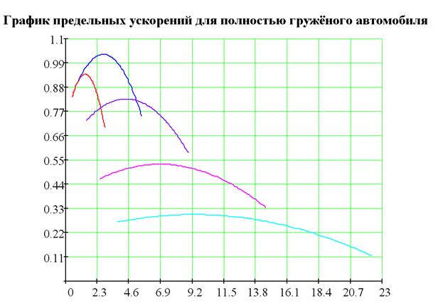 1.8 Построение графика предельных ускорений Для любой скорости на каждой передачи по кривой динамической характеристики можно определить ускорение (м/с2), пользуясь формулой: