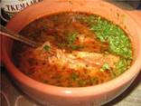 400 г говядины на кости 2-3 крупных луковицы 4 ст. ложки риса 400-500 г спелых (очень) помидор Свежая зелень (укроп, петрушка – обязательно, кинза – по желанию) Специи 1 зубчик чеснока