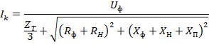 I к = Ua / (ZT / 3 + ZФ + ZH + jXп), (2)