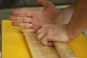 1. Наматывается пленка вдоль палочек. В среднем делается 7 оборотов. После намотки нужно выпустить воздух из под пленки, для этого делаются надрезы коврик скручивается, важно как можно больше воздуха. 2. Коврик смазываем сыром, чтобы ролл не прилипал к коврику, укладываем лист нори. Поверх нори раскладываем тонким слоем рис, таким образом чтобы он выступал на 1-1, 5 см. Рис должен быть теплый, тогда он будет мягкий и не будет разваливаться. 3. Смазываем внутреннюю часть сыром. 4. Равномерно выкладываем начинку 5. Начинаем сворачивать ролл со свободно от риса конца. Мастерство приходит с опытом, но научится можно достаточно быстро. придаем квадратную форму, прижимать сильно не надо, чтобы начинка не вылезала. 6. Скручиваем ролл, потом в обратную сторону заворачиваем хвостик с рисом. Еще раз формируем квадратную форму. Хорошенько скручиваем квадратный ролл, подвиваем с обеих сторон, чтобы наполнитель не выпадал. 7. Формируем треугольную форму, на верхний угол укладываем рыбу. Рыбу следует лучше нарезать из цельного куска чтобы дли была равна ширине листа нори. 8. Посыпаем верхушку кунжутом. 9. Нарезаем роллы, лучше всего использовать японские ножи которые отличаются от обычных односторонней заточкой. Перед нарезанием нож нужно смочить водой. 10. Приготовить васаби можно из сухого порошка смешанного с холодной водой. Имбирь нужен для того чтобы сбить вкус от предыдущего блюда, наиболее актуально его использовать когда вы едите ассорти.