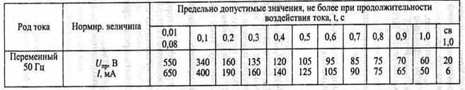 Предельно допустимое Uпр в зависимости от времени воздействия на человека в аварийном режиме