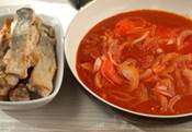 Мука пшеничная 20.0 г Горбуша 400.0 г Лук репчатый 1.0 шт Паста томатная 100.0 г Помидоры красные 2.0 шт Сахар песок 1.0 ст.л. Соль 1.0 ч.л Паприка 1.0 ч.л
