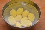 1. Чистим и моем картофель. 2. Аккуратно, острым ножом вырезаем из картофелины форму «бочонка». Так картошка смотрится намного симпатичнее и из-за маленького размера лучше прожаривается. 3. Вот такие аккуратные бочонки должны получиться из нашей картошки. 4. Далее бланшируем. В кипящую воду опускаем картофелины и варим примерно 5-7 минут 5. Вытаскиваем картофель и даём ему стечь. 6. Далее разогреваем сковороду на среднем огне, наливаем 2 ст. л. оливкового масла, растапливаем в нём сливочное. 7. Выкладываем картошку и на среднем огне обжариваем со всех сторон до уверенного золотистого цвета. Солим и перчим после того, как вынули готовый картофель из сковороды.