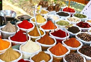 Сахар — мускатный орех, ванилин, кумин, фенхель, кардамон, мускатный орех, плоды манго, мята. Ананас — кардамон, кумин. Банан — ванилин, плоды манго. Боярышник — имбирь, кардамон, кумин, лимон, мята. Виноград (изюм) — кардамон, имбирь, апельсин (корки). Вишня — кумин, кардамон, лимон, кислота, фенхель. Гранат — имбирь, фенхель. Груша — кардамон, манго (плоды), фенхель. Ирга — кумин, кардамон, мускатный орех. Калина — кардамон, кумин, плоды манго. Клубника (" Виктория") — имбирь, корка лимона, манго, кумин. Клубника (лесная) — кумин, калинджи, фенхель, имбирь. Крыжовник — кумин, фенхель, имбирь. Курага — фенхель. Лимон — ванилин, фенхель, плоды манго. Малина — мята, кумин, плоды манго. Мандарин — мята, кумин, кардамон. Облепиха — кумин, фенхель, мята, ванилин, плоды манго. Рябина красная — куркума, имбирь, кардамон, манго, калинджи, кумин. Рябина черноплодная — кардамон, карри, фенхель, калинджи. Слива синяя — плоды манго, ванилин, фенхель, кардамон. Слива белая — плоды манго, кардамон, фенхель. Смородина белая — лимон, кумин, мята. Смородина красная — лимон, апельсин (корка), кумин, манго плоды. Смородина черная — кардамон, фенхель, ванилин, лимон, калинджи. Финик — кардамон, плоды манго, фенхель, ванилин. Черемуха черная — кардамон, лимон, ванилин, фенхель. Яблоки — фенхель, ванилин. Земляника — имбирь, корка лимона, манго, мускатный орех, калинджи.