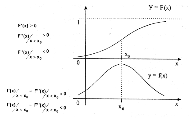 Если известна функция плотности распределения у=f(х), то функция распределения у=F(x) находится по формуле