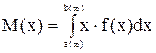 Для непрерывной случайной величины математическое ожидание вычисляется через определенный интеграл от случайной величины х, умноженной на элемент вероятности dP = f(x)dx, т.е.
