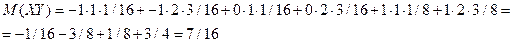 Задача 5. Для пары случайных величин из задачи 3 вычислить Решение. Пользуемся формулой, указанной выше. А именно, в каждой клетке таблицы выполняем указанную операцию (т.е. умножение значений