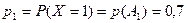 Рис. 1 Пример 1. Охотник, имеющий 4 патрона, стреляет по дичи до первого попадания или расходования всех патронов. Вероятность попадания при первом выстреле равна 0, 7, при каждом следующем выстреле уменьшается на 0, 1. Составить закон распределения числа патронов, израсходованных охотником. Решение. Так как охотник, имея 4 патрона, может сделать четыре выстрела, то случайная величина X – число патронов, израсходованных охотником, может принимать значения 1, 2, 3, 4. Для нахождения соответствующих им вероятностей введем события: