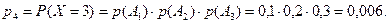 По теореме умножения для независимых событий и теореме сложения для несовместных событий, находим: