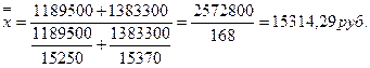Пример. По приведенным данным о средней заработной плате рабочих в двух цехах, рассчитать общую среднюю заработную плату по предприятию.