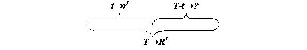 Соглашения форвард/форвард. Одним из способов страхования от процентного риска является заключение соглашения форвард/форвард (forward/ forward). Форвард/форвард дает возможность банку заключить договор на депозит в будущем в определенной валюте на определенный срок и по фиксированной процентной ставке. Соглашение форвард/форвард можно использовать не только для хеджирования, но и для спекуляции. Логика расчета ставки форвард/форвард состоит в том, что на момент заключения соглашения не известна ставка, к примеру, по трехмесячным депозитам через три месяца, однако она может быть рассчитана на основании существующих ставок по трех- и шестимесячным депозитам. То есть, если длинный период - Т, процентная ставка в этот период - RT, короткий период - t, процентная ставка для короткого периода – rt, а процентная ставка форвард/форвард - RT-t в период T-t, графически это можно представить как: