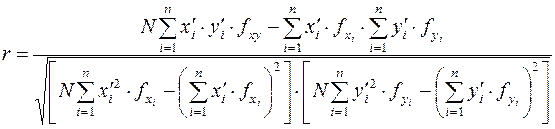 Предполагая линейную корреляционную связь между признаками, в качестве показателя тесноты связи следует применять линейный коэффициент корреляции ( Для вычисления линейного коэффициента корреляции можно пользоваться следующей формулой: