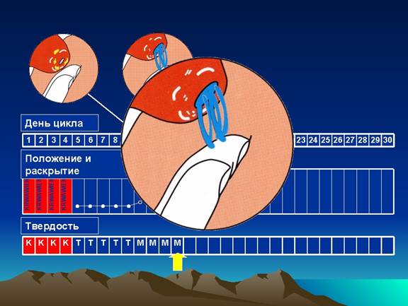7. Отмечаем день «пика слизи». «Пик слизи» – последний день появления слизи плодного типа (в зеленом поле). Этот день в графе «день пика слизи» на карте наблюдения обводится в кружочек и, начиная со следующего после «пика» дня, нумеруются еще три дня. Цифры ставятся либо под, либо над графой «день пика слизи» («пик слизи» + 3).