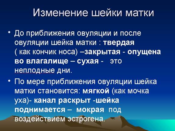 - зачатие планируется Если Вы планируете зачатие ребенка, то выбирайте для супружеской близости дни наличия наиболее плодной слизи: тянущейся, прозрачной, напоминающей сырой белок куриного яйца, дающей ощущение “мокро”, “скользко”. Помните, что самые благоприятные для зачатия дни — это Пик слизи, день до него и день после него. Многим супружеским парам с так называемой ограниченной фертильностью (плодностью) удалось зачать ребенка только после того, как женщина научилась ориентироваться в слизи, хотя до этого были годы лечения от бесплодия. Без слизи зачатие невозможно — слишком важные функции она выполняет: питает сперматозоиды, производит их селекцию, снабжает их энергией и транспортирует через шейку матки и матку к маточным трубам — на свидание с яйцеклеткой. А некоторые женщины имеют очень мало этой слизи — иногда только один день в цикле — используйте этот день! Не дожидайтесь температурного скачка, если Вы планируете ребенка — Вы ведь помните, что яйцеклетка живет только 24 часа! А скачок температуры свидетельствует о том, что яйцеклетка уже вышла и Ваши шансы на зачатие в таком случае очень незначительны. Некоторые женщины даже ждут, чтобы температура повысилась обязательно до 37 С! — но этого может и не быть при состоявшейся овуляции! Для констатации овуляции важна именно разница температур между низкой и высокой фазой. И эта разница должна составлять не менее 0, 2 С от последней точки низкой фазы до одной из первых трех точек высокой фазы. Если Вы хотите запланировать пол ребенка — то попробуйте воспользоваться следующей теорией, которая имеет 70-80% вероятности. Выберите день близости ближе к моменту овуляции — это даст Вам 70-80% вероятности зачатия мальчика. В начале появления фертильной слизи (прозрачной, растяжимой, ощущение “мокро”, “скользко”) — возможно зачатие девочки (столько же процентов). Суть теории состоит в следующем: согласно исследованиям, Х-хромосомы живут дольше чем Y-хромосомы. Это значит, что если близость была только в начале появления фертильной слизи, то выживают в основном сперматозоиды, несущие информацию “Х”. Зато Y-хромосомы подвижнее. То есть, если близость произошла непосредственно перед овуляцией или сразу после нее, то Y-хромосомы быстрее достигнут яйцеклетки.