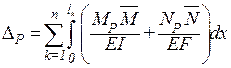 Единичная сила P=1 единичного состояния на перемещении грузового состояния Δ Pсовершает возможную работу: