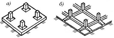 Рис. 4.8. Сплошные фундаменты: а – безбалочный; б – с ребристой плитой