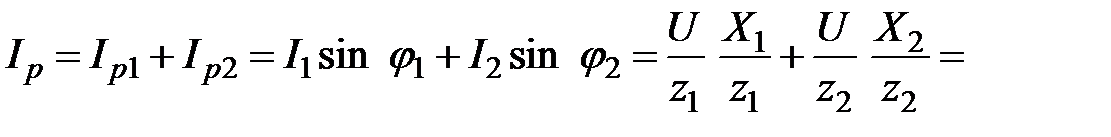 Реактивная составляющая входного тока определяется как алгебраическая сумма реактивных составляющих токов в параллельных ветвях. Реактивную составляющую ветви с катушкой считают положительной, а с конденсатором – отрицательной. Знаки учитывают при подстановке соответствующих значений