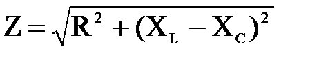 Как записывается закон Ома для цепи переменного тока с активным, индуктивным, емкостным сопротивлениями, а также с последовательным соединением R, L, C