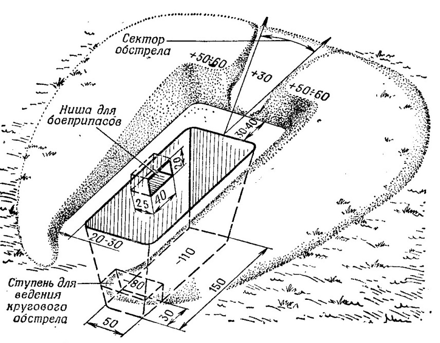 Окоп для стрільби лежачі. Окоп для стрільби стоячи.