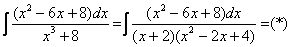 Смотрим на наш знаменатель: 1) Если в знаменателе находится «одинокий» множитель в первой степени (в нашем случае 2) Если в знаменателе есть кратный множитель 3) Если в знаменателе находится неразложимый многочлен второй степени (в нашем случае На самом деле, есть еще 4-ый случай, но о нём я умолчу, поскольку на практике он встречается крайне редко. Пример 4 Представить функцию Это пример для самостоятельного решения. Полное решение и ответ в конце урока. Если Вы разобрались, по каким принципам нужно раскладывать дробно-рациональную функцию в сумму, то сможете разгрызть практически любой интеграл рассматриваемого типа. Пример 5 Найти неопределенный интеграл. Шаг 1. Очевидно, что дробь является правильной: Шаг 2. Можно ли что-нибудь разложить в знаменателе на множители? Можно. Здесь сумма кубов