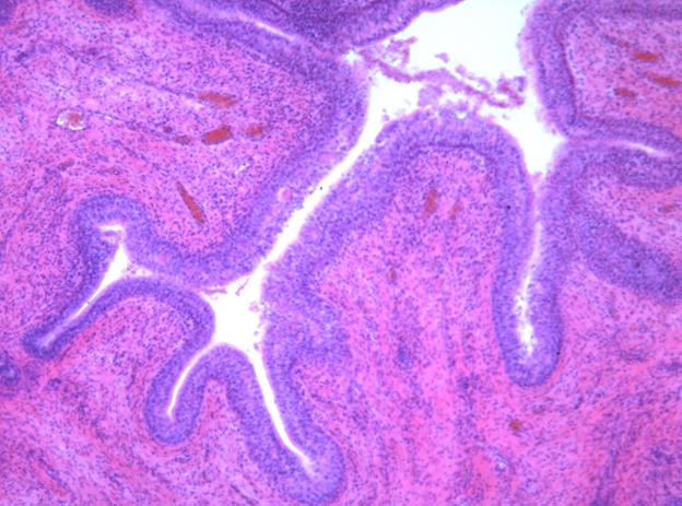 I Строма органа: 1. прослойки рыхлой соединительной ткани, 2. пучки гладкомышечных клеток, II. Kонцевые отделы