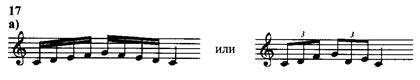Какова бы ни была фактура фортепианного произведения, каков бы ни был по длине и по рисунку пассаж или последовательность созвучий, они исполняются на клавиатуре инструмента, с присущей ей «топографией», рукой, имеющей пять пальцев. Четыре пальца — второй, третий, четвертый, пятый — играют в одной плоскости и «пере- бирают» находящиеся под ними клавиши часто без горизонтального передвижения руки и без существенной перестройки соотношения вы- шерасположенных звеньев руки. Рука (имеется в виду правая) при игре ряда нот вверх начинается первым пальцем, им же она кончается при игре вниз. Когда линия ме- лодии или пассажа выходит за эти пределы, неизбежен перенос руки в новую позицию. Это может быть осуществлено связыванием посред- ством первого пальца. Таков первый признак позиции. Здесь первый палец — «пограничный столб». Но имеются случаи, когда применение первого пальца не нарушает принятого положения руки, и он включа- ется в то же звено, например: