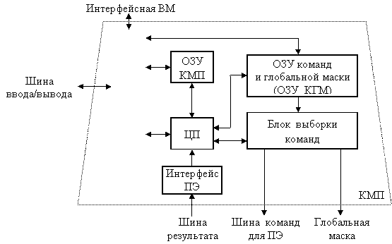 Контроллер массива процессоров выполняет последовательный программный код, реализует команды ветвления программы, транслирует команды и сигналы управления в процессорные элементы. Одну из возможных реализаций КМП, принятую в устройстве управления системы PASM, иллюстрирует рис. 8.2.
