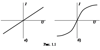 Сопротивления, ВАХ которых не являются прямыми линиями, т. е. они нелинейны, называют нелинейными (рис. 1.1, б), а электрические цепи с нелинейными сопротивлениями – нелинейными электрическими цепями.