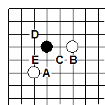 Д.13. Например, применима следующая диагональная игра в направлении центра. белые могут ответить ходом в пункт 3-3, после чего они могут соединиться с одним из своих двух какари – лучший при условии, что у них уже имеется камень A.