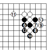 Д.5. В наиболее типичном варианте этого продолжения белые соединяются ходом 7 и получают сильную стенку в сэнтэ; черные же получают большой угол.
