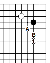 Д.4. черные на ход белых обязаны как-то ответить, чтобы избежать давления белых пункте 11, но прочное соединение не обязательно. Вариант, начинающийся ходом 7, также даст нужный эффект. белые отвечают 8, 10 и 12. Ход черных 13 в этом дзёсэки предпочтительней, чем в A, поскольку если черные позднее сыграют в B, то для них лучше иметь камни 13 и B нежели A и B (захватывается линия слева).