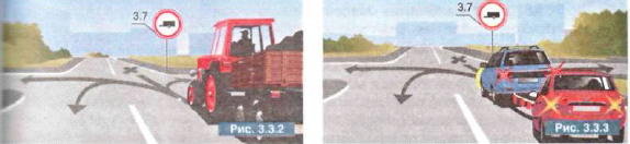 Знаки 3.2 - 3.9, 3.32 и 3.33 запрещают движение соответствующих видов транспортных средств в обоих направлениях. Действие знаков не распространяется: 1 3.1 - 3.3, 3.18.1, 3.18.2, 3.19, 3.27 - на маршрутные транспортные средства;