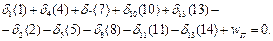 1. (1) + (2) + (11) + w 1 = 0. 2. (3) + (4) + (12) + w 2 = 0. 3. (5) + (6) + (13) + w 3 = 0. 4. (7) + (8) + (14) + w 4 = 0. 5. (9) + (10) + (15) + w 5 = 0. 6. (11) + (12) + (13) + (14) +(15) + wГ = 0. 7. (2) + (3) + wS = 0. 8. δ 1(1)– δ 2(2)+ δ 3(3)– δ 4(4)+ δ 5(5)– δ 6(6)+ δ 7(7)– δ 8(8)+ δ 9(9)– δ 10(10)+ wП = 0. 9. δ 1(1)– δ 11(11)+ δ 12(12)– δ 4(4)+ wБ = 0.