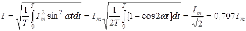 Отсюда получаем связь между действующим и амплитудным значениями синусоидального тока