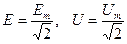 Для синусоидальных ЭДС и напряжений действующие значения равны
