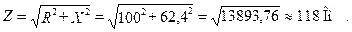 Пример. Цепь (рис. 3.9), состоящая из конденсатора ёмкостью С =100 мкФ, катушки индуктивности L =0, 3 Гн и резистора R =100 Ом, включена в сеть переменного тока 220 В 50 Гц. Найти ток в цепи, активную, реактивную и полную мощности, а также определить характер полного сопротивления (активно-индуктивный или активно-емкостный). Построить векторные диаграммы тока и напряжений. Решение. Реактивные сопротивления XL =2π fL =2·3, 14·50·0, 3=94, 2 Ом XС =1/2π fС= 1/(314·100·10-6)=31, 8 Ом X =(XL - XС)=62, 4 Ом. Полное сопротивление цепи
